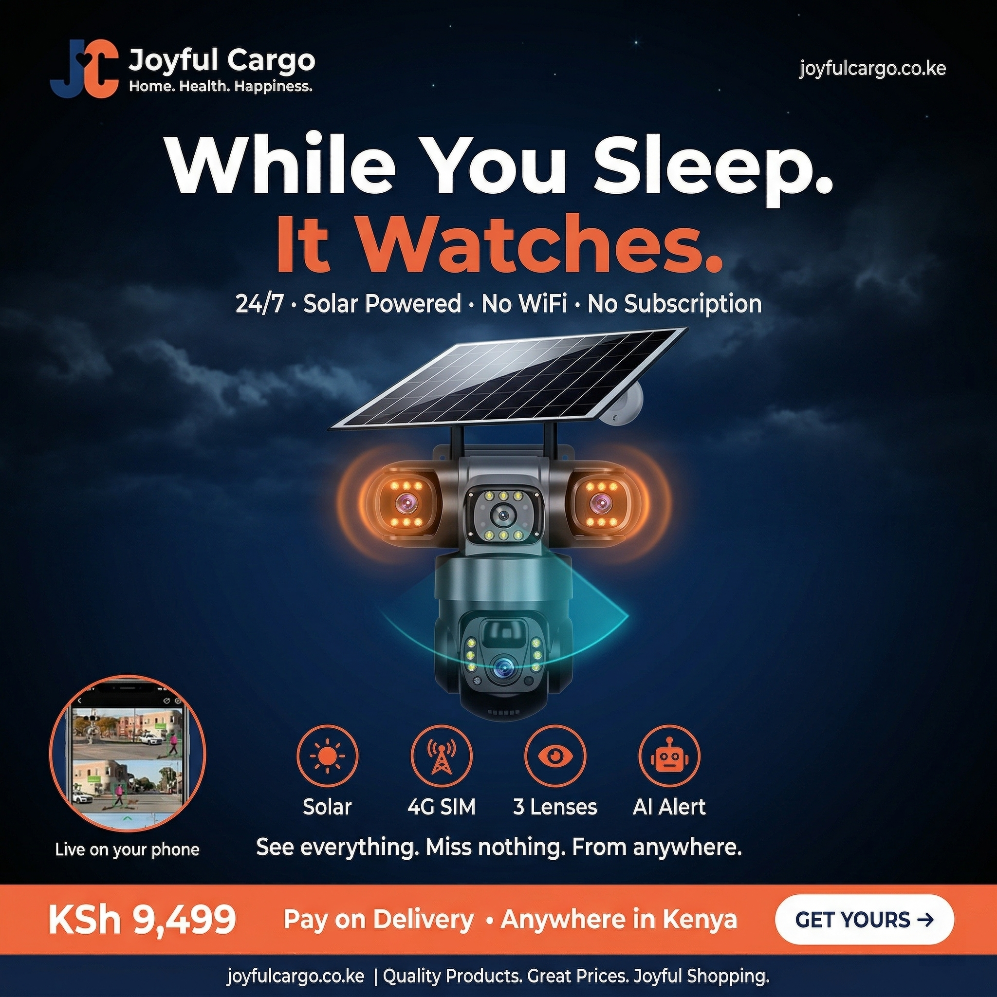 This smart security solution is perfect for homes, farms, offices, construction sites, and remote areas where power and Wi-Fi may be limited.