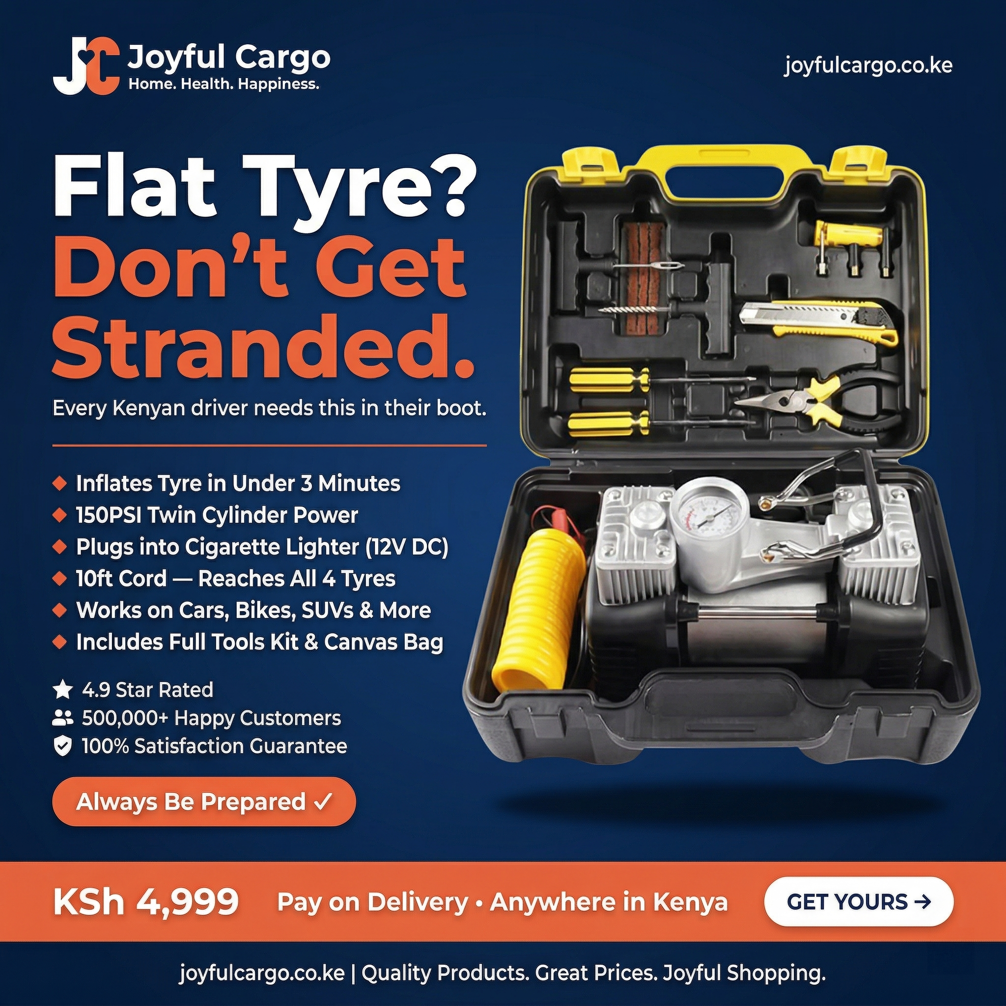The integrated tool kit provides all the essential tools needed for minor car repairs — all neatly organized in a compact, durable case. Whether you’re maintaining tyre pressure or fixing small issues, this compressor kit ensures you’re always prepared.